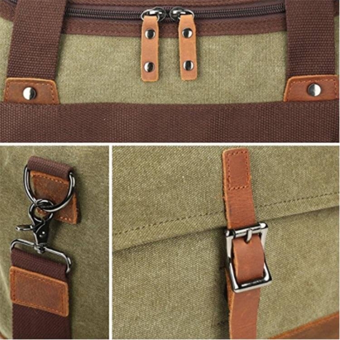 Solid canvas and top quality crazy horse genuine leather